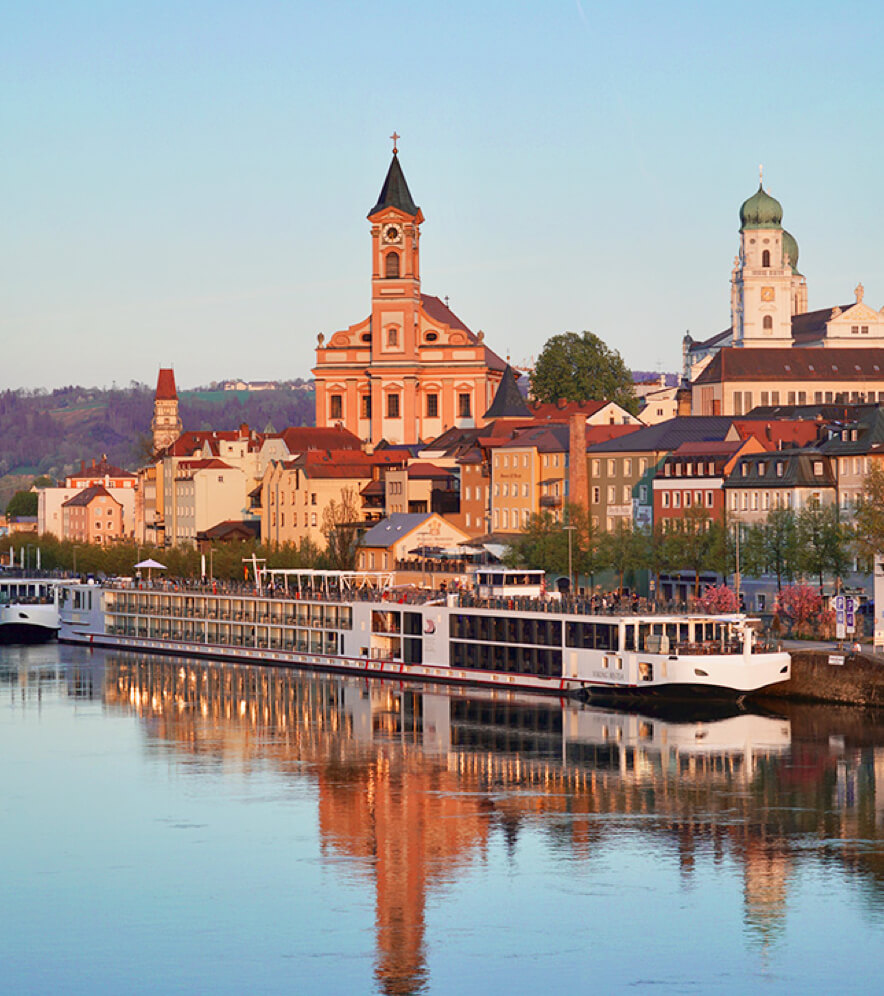 帕绍这座优雅的水城由凯尔特人在2000多年前建立,是巴伐利亚最古老的城市之一。三河交汇,远离城市喧嚣,独特的地理位置造就了这座“巴伐利亚威尼斯”水城独特的美感。在旅游礼宾的陪同下,步行漫游帕绍。穿过静谧古朴的老城街道,边走边欣赏彩虹般缤纷的建筑外墙,您将看到令人印象深刻的主教官邸。数百年来,大权在握的主教们在此统治着这里的世俗和宗教生活。您还将途经历史悠久的老市政厅,这座14世纪的老楼建于多瑙河畔一个旧鱼市场的遗址上,外墙上的壁画讲述着帕绍古老的故事。最后,我们将步行至宏伟的圣斯蒂芬大教堂。这座建于17世纪的巴洛克风格大教堂,拥有欧洲最大的管风琴——17,974根琴管,并启发李斯特写下了著名的《匈牙利加冕弥撒》。游览结束后,您可继续自行探索,尽情享受这座边境小城的幽静时光。
