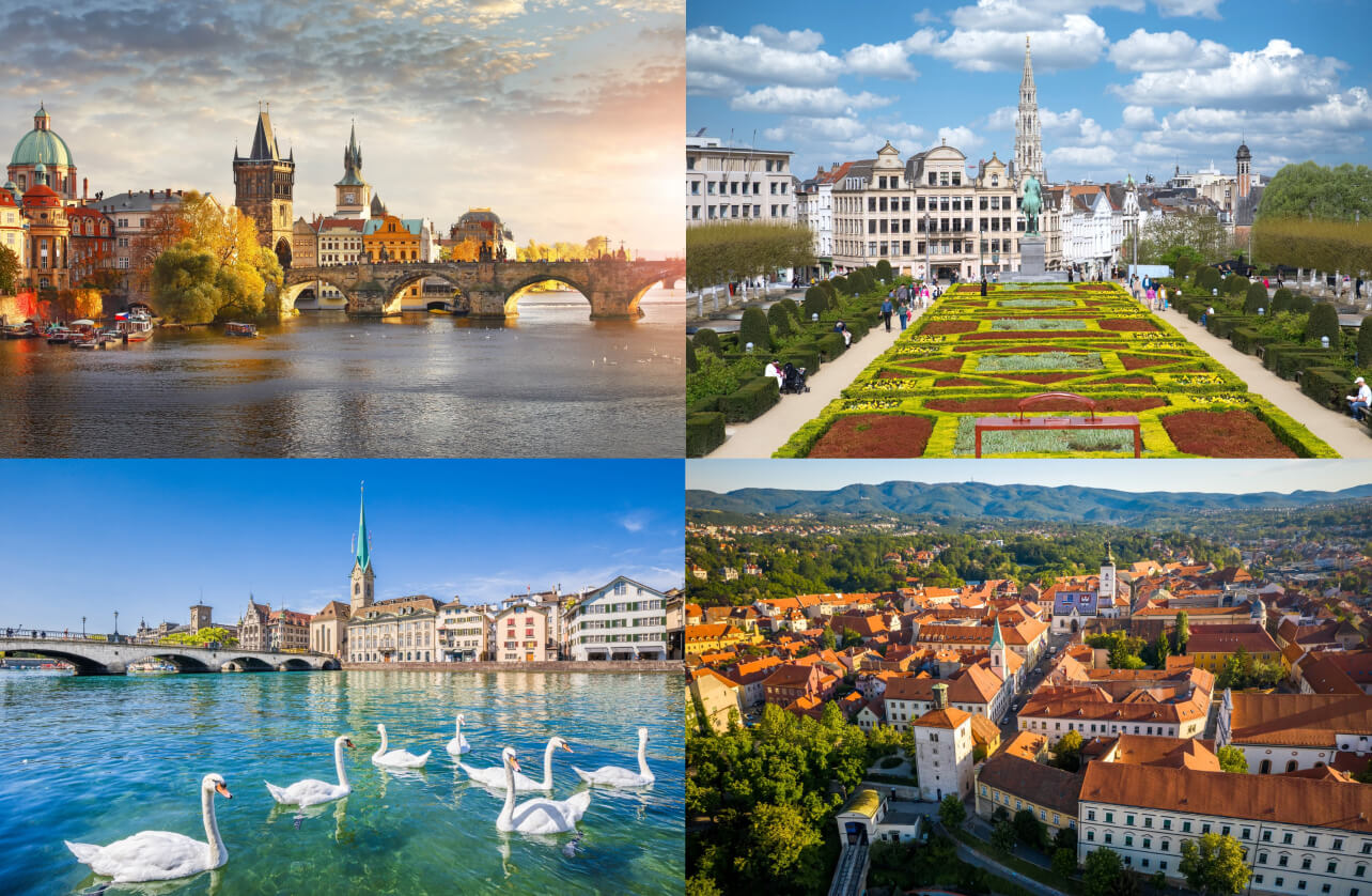 (左上至右下依次为:捷克布拉格、比利时布鲁塞尔、瑞士苏黎世、克罗地亚萨格勒布)